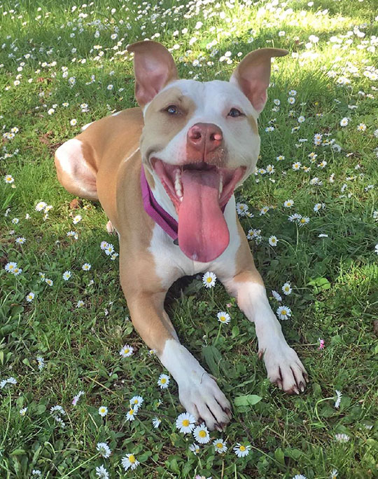 Poppy Jeanne is an Olde English Bulldog who will be 2 years old in July and is owned by our Assistant Manager, Heidi. Poppy had a really rough start in life and had to have an amputation of a front leg when she was just 8 weeks old. Despite this challenge, Poppy really enjoys swimming! During the warmer days in Oregon, you will find her near any type of water doing what she loves. She also loves road trips to barrel races with her mom and dad.